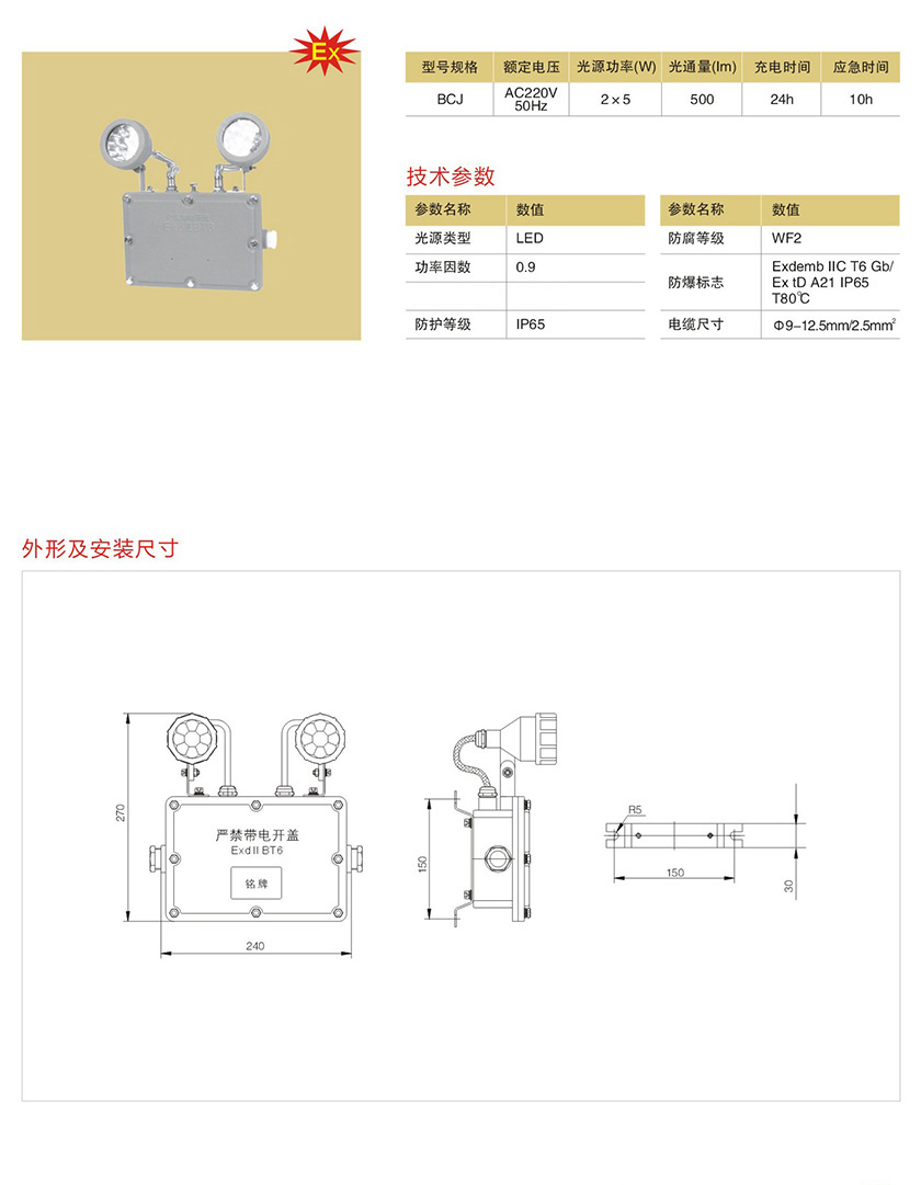 产品中心 防爆灯具类(金卤灯、钠灯) BCJ防爆照明应急灯(IIB)