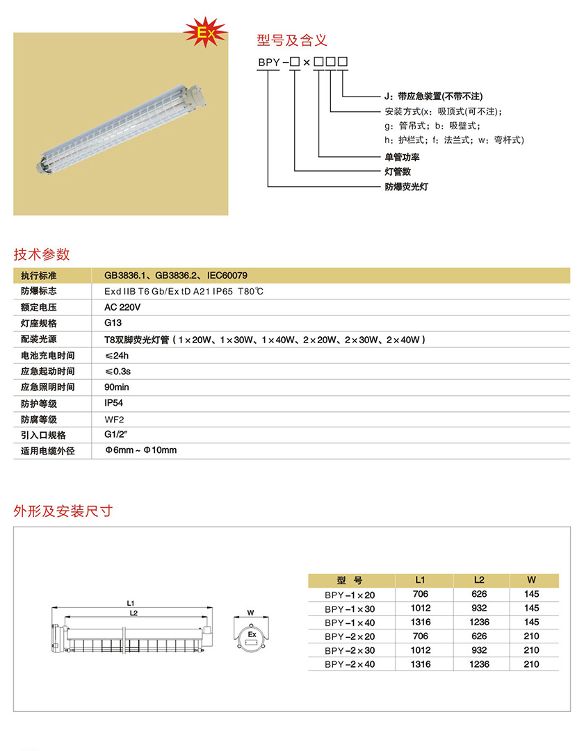 产品中心 防爆荧光灯类 BPY系列防爆荧光灯(IIB)