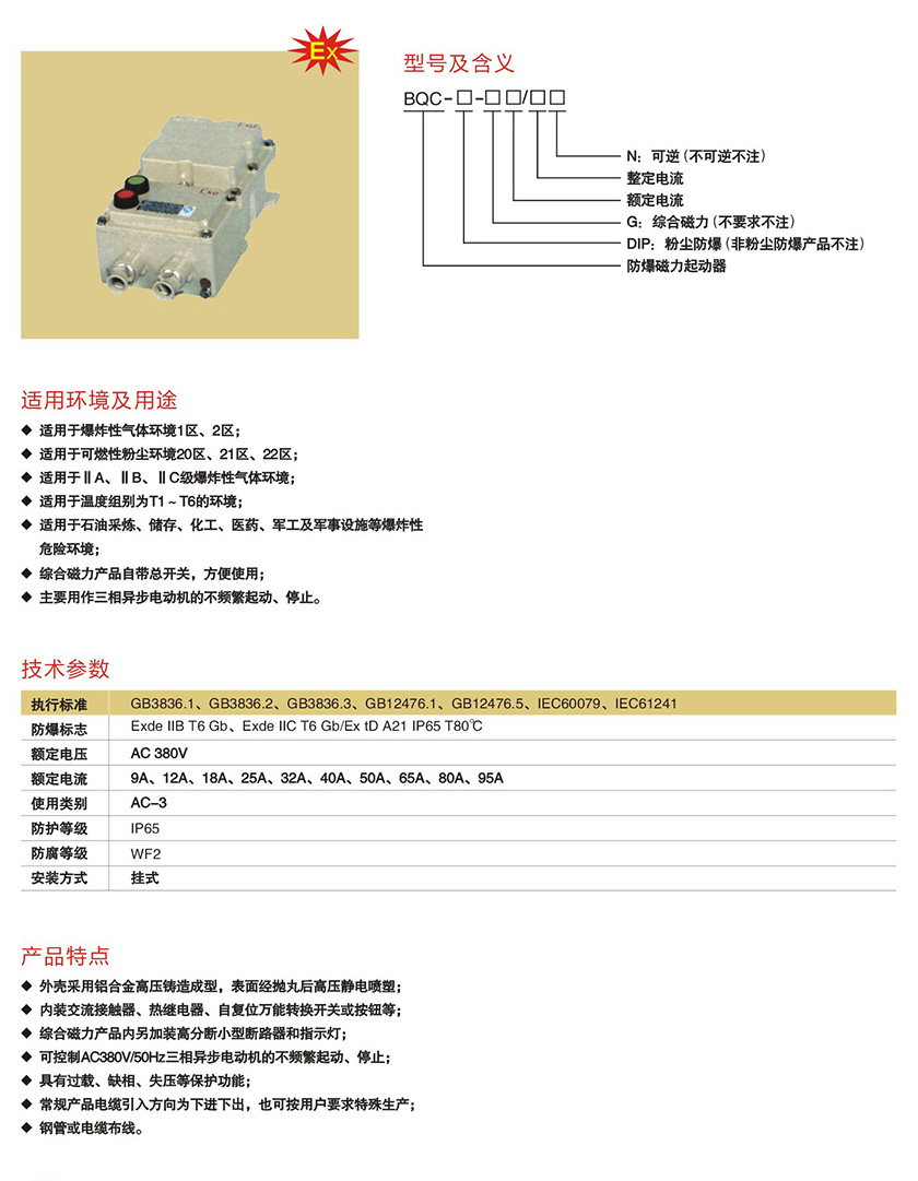 产品中心 防爆电器类 BQC系列防爆磁力起动器(IIB、IIC)