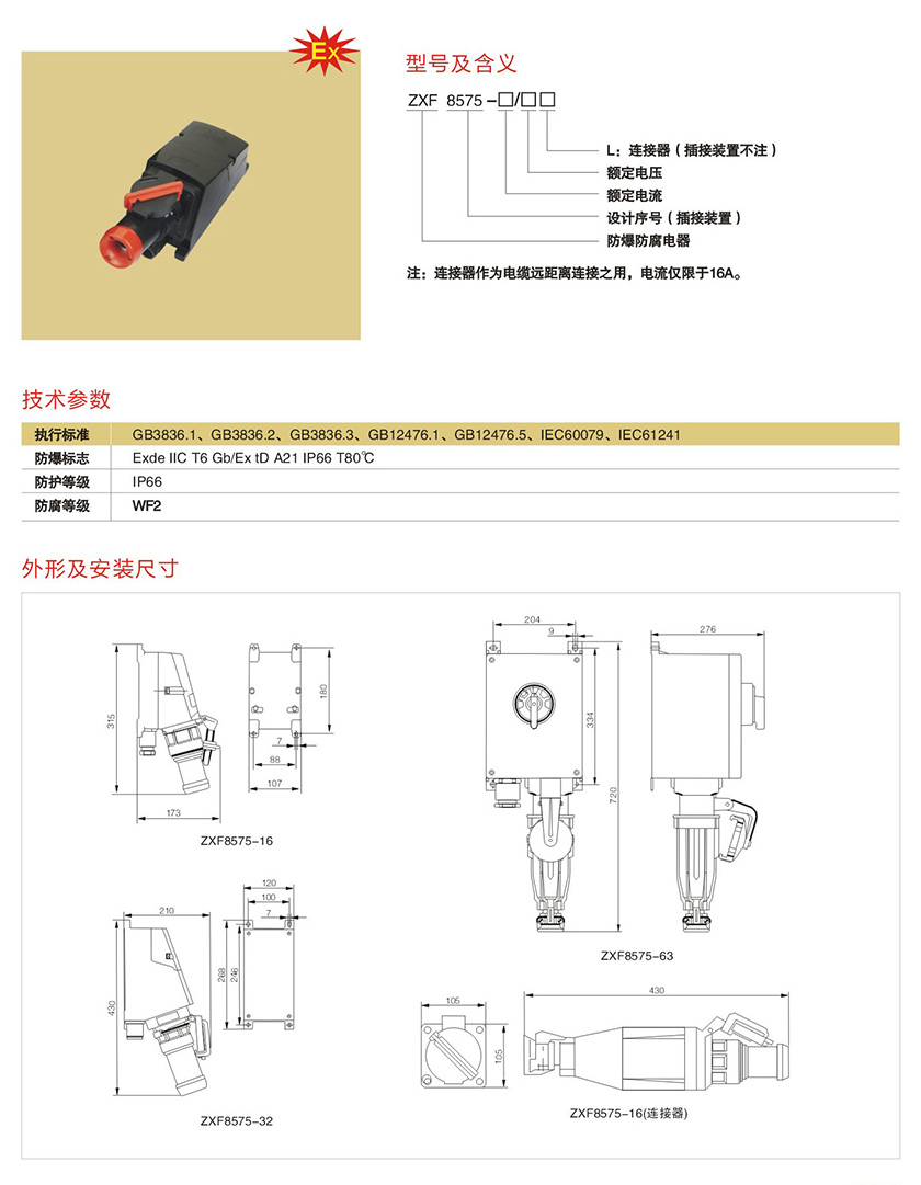 产品中心 防爆防腐电器类 ZXF8575系列防爆防腐插接装置(IIB、IIC)