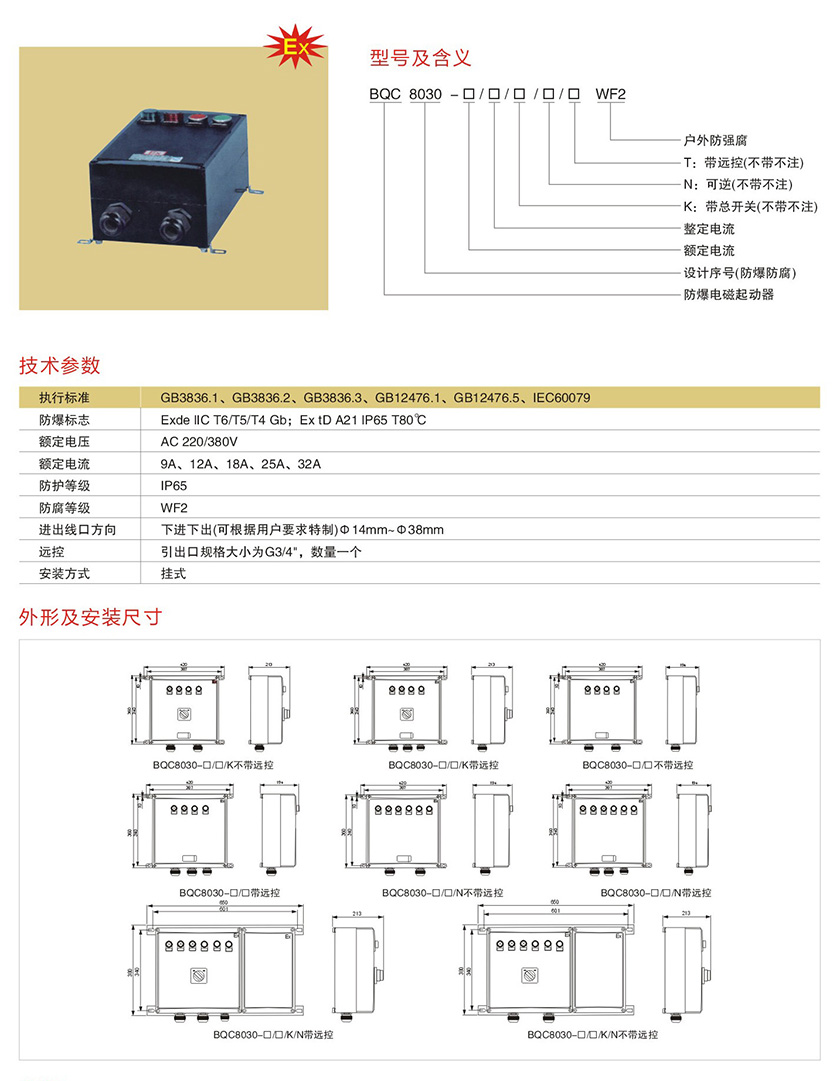 产品中心 防爆防腐电器类 BQC8030系列防爆防腐电磁起动器(IIB、IIC)