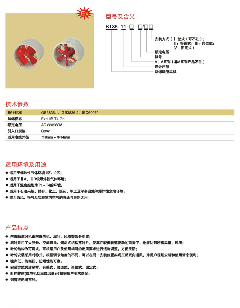 产品中心 防爆风机、管件类 BT35-11系列防爆轴流风机(IIB、IIC)