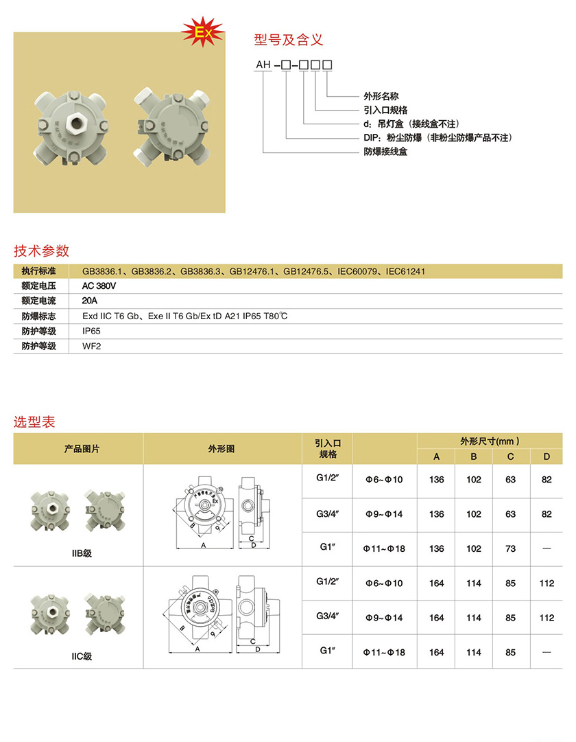 产品中心 防爆风机、管件类 AH系列防爆接线盒(IIB、IIC)